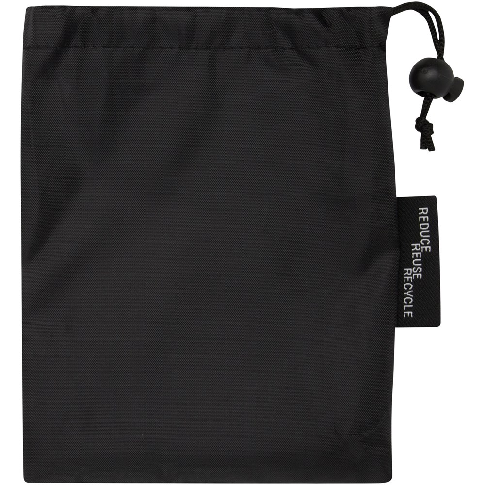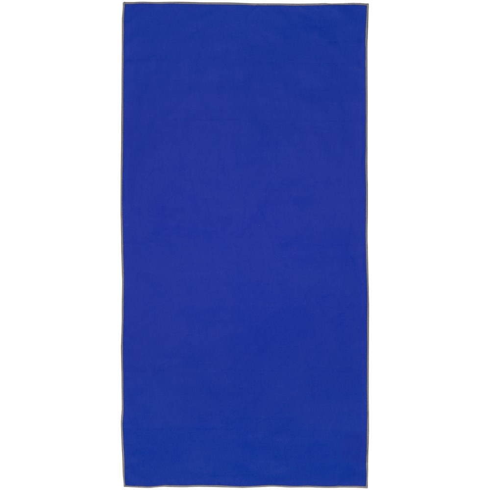 Die Pieter Sporthandtuch saugt sehr gut auf, ist leicht, trocknet schnell und der Stoff ist langlebig und extrem weich. Gefaltet und mit dem Gummiband gesichert ist das Handtuch klein und handlich, gut für Fitnessstudio, Schwimmbad oder für Rucksacktouren und Camping. Das Handtuch hat eine Größe von 50 × 100 cm und besteht zu 90% aus GRS-recyceltem Polyester und zu 10% aus Nylon. Es kann bei 40 °C in der Maschine gewaschen werden. Das Handtuch wird mit einem Aufbewahrungsbeutel (17 × 13 cm) aus recyceltem PET-Kunststoff geliefert, der sich hervorragend für den Aufdruck eines Logos eignet.
