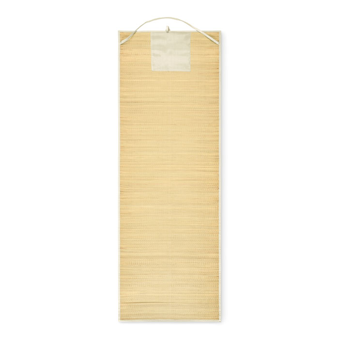 Rollbare Strandmatte aus natürlichem Stroh. Tragegurt aus Polyester.