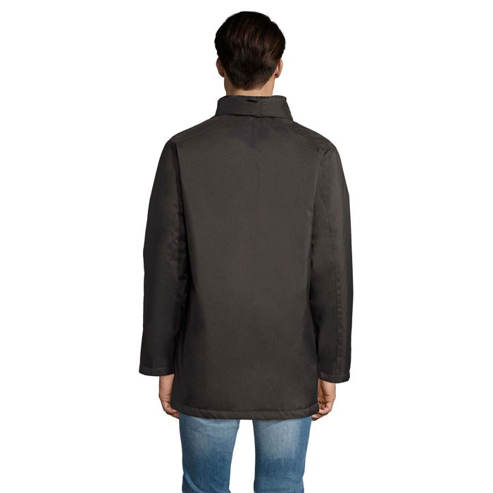 SOL'S ROBYN, Unisex-Jacke mit wattiertem Innenfutter, 100% Polyester - PVC-Beschichtung, Futter und Wattierung: 100% Polyester Oxford 300d, Reißverschluss mit doppeltem Schieber und Knopfleiste mit selbstklemmenden Bändern und verdeckten Druckknöpfen, Kapuze im Kragen, fleecegefütterter Innenkragen, 2 Reißverschluss-Außentaschen mit Patten, 1 Innentasche, Manschettenverschlüsse. Zur Größenanpassung beachten Sie bitte die Größentabelle im Abschnitt Produktdokumentation.