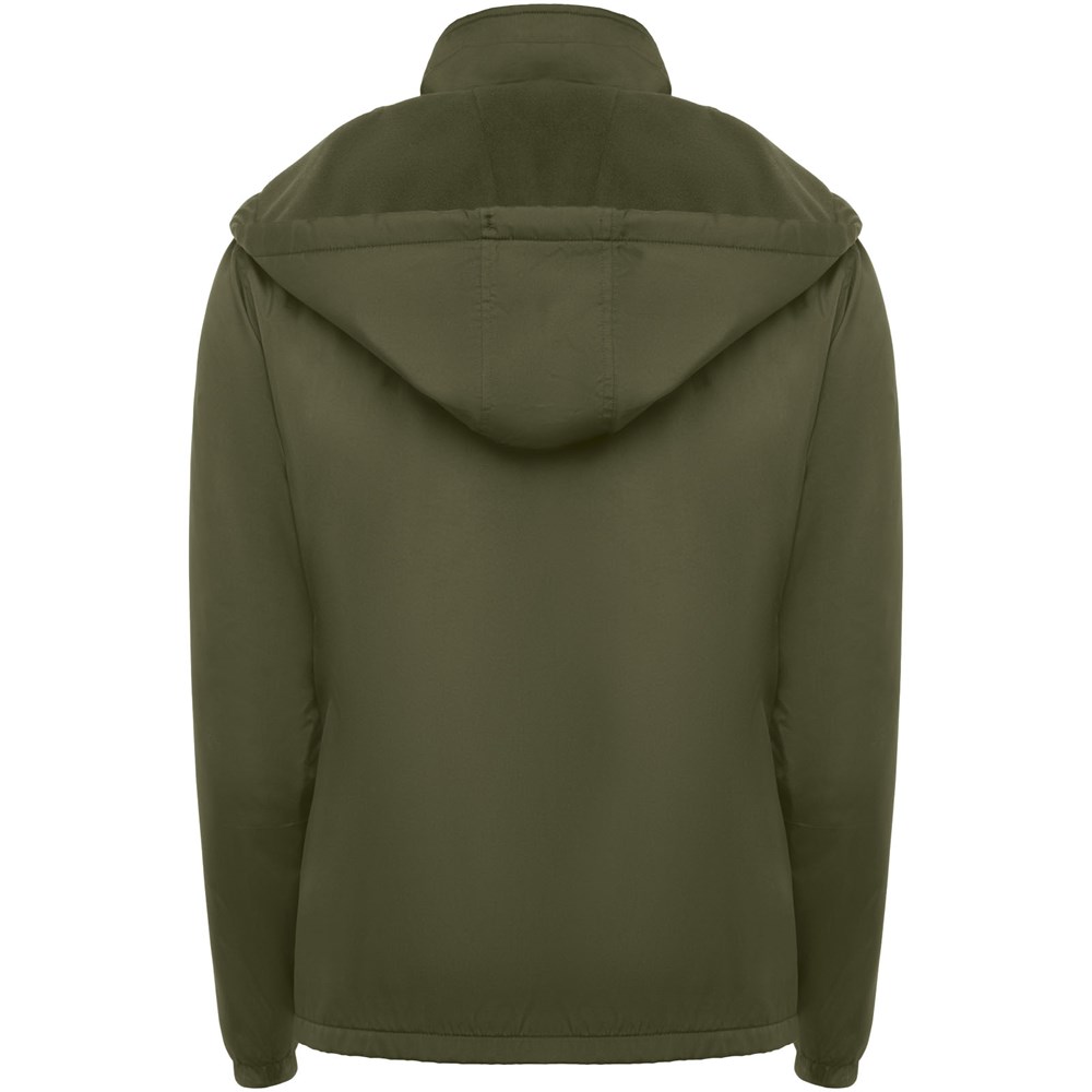 Leichte, wasserabweisende Jacke. Hoher Kragen und einrollbare, verstellbare Kapuze. Innenfutter aus Microfleece. Front-Reißverschluss und Kinnschutz. Elastische Ärmelbündchen. Zwei Seitentaschen mit Reißverschluss. Innere Brusttasche links. Herausnehmbares Etikett. Wasserabweisend. Winddicht. Das männliche Modell ist 184 cm groß und trägt Größe L, das weibliche Modell ist 174 cm groß und trägt Größe S.