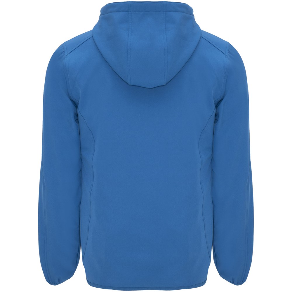 2-Lagen-Softshell mit sportlichem Schnitt, kontrastfarbigem Reißverschluss mit Kinnschutz und Zipper. Innenfutter aus kontrastfarbigem Mikrofleece. Außentasche auf der rechten Brust mit verdecktem Diagonal-Reißverschluss. Zwei Seitentaschen mit verdecktem Reißverschluss. Tasche auf dem linken Ärmel. Elastische Bündchen an Ärmeln und Saum. Einrollbare Kapuze mit kontrastfarbigem Micropolar-Futter. Herausnehmbares Etikett. Wasserabweisend. Winddicht. Das männliche Modell ist 185 cm groß und trägt Größe M, das weibliche Modell ist 174 cm groß und trägt Größe S.