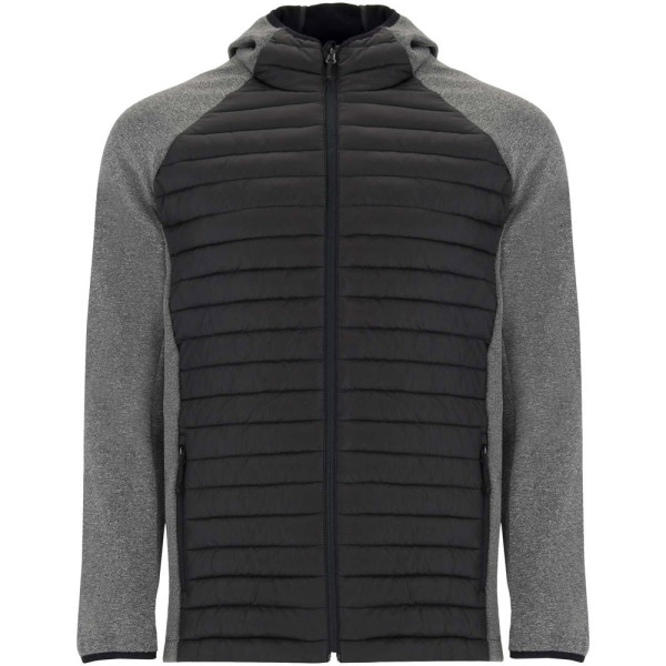 Unisex Jacke Zwei-Stoff-Kombination. Nicht abnehmbare Kapuze. Raglanärmel. Ärmel, Seiten und Kapuze aus Softshell-Material. Gestepptes Gewebe, Federtakt auf Vorder- und Rückenteil. Umgekehrter Reißverschluss mit Kinnschutz und Zipper. Zwei Fronttaschen mit Reißverschluss. Elastische Bündchen an Kragen, Ärmeln und Saum. Herausnehmbares Etikett. Winddichtes Modell. Das männliche Modell ist 184 cm groß und trägt Größe L, das weibliche Modell ist 179 cm groß und trägt Größe S.
