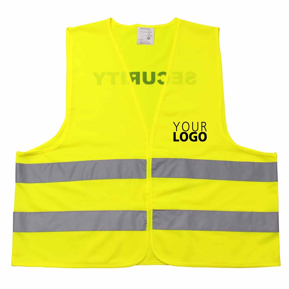 Unsere Warnweste Premium gelb ist aus 100% Polyester, wird nach EN ISO 20471 produziert und ist TÜV-Rheinland geprüft. Mit Anleitung einzeln im wiederverschließbaren Polybeutel verpackt. Durch die beiden Klettverschlüsse ist die Größe variabel einstellbar. Mit zwei reflektierenden Streifen, perfekt vernähte Qualität und Einleger in sieben Sprachen mit den gesetzlichen Pflichtangaben. Mit dem Standardmotiv 'Security' auf der Rückseite 1farbig schwarz bedruckt. Ein zusätzlicher Druck auf der Vorderseite ist möglich. Gern erstellen wir Ihnen dazu ein Angebot.