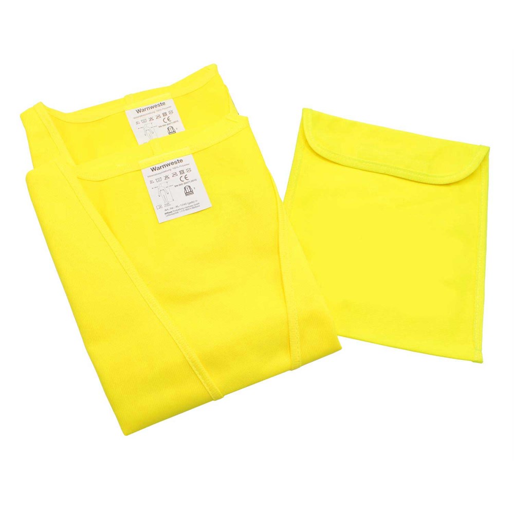 Unser beliebtes Kfz-Set VIP besteht aus unserem Warnwestenbeutel Classic und zwei Warnwesten Classic gelb. Diese werden nach EN ISO 20471 produziert und sind TÜV-Rheinland geprüft. Durch die zwei extra langen Klettverschlüsse ist die Größe der Weste variabel einstellbar. Mit zwei reflektierenden Streifen und Einleger in deutscher Sprache mit den gesetzlichen Pflichtangaben. Der Polyesterbeutel wird einfarbig schwarz auf der Vorder- oder Rückseite bedruckt. Die Westen sind im Polyesterbeutel konfektioniert.