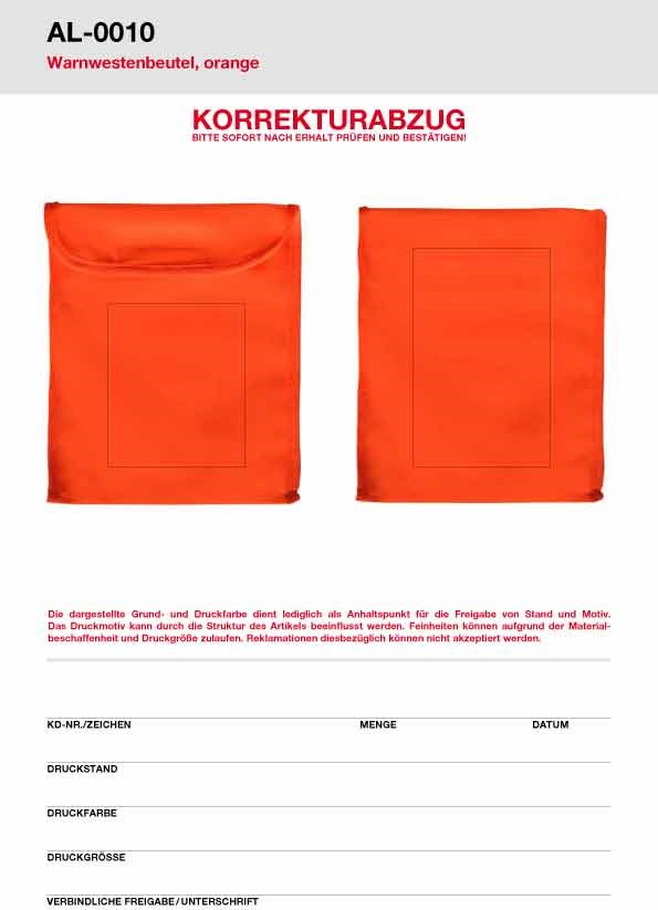 Unser Warnwestenbeutel CLASSIC aus 100% Polyester mit Klettverschluss ist dür eine Warnweste geeignet. Sie können Ihr Motiv auf der Vorder- oder Rückseite aufdrucken.