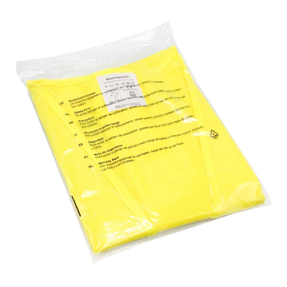 Unsere Warnweste Small aus 100% Polyester wird nach EN ISO 20471 produziert und ist TÜV-Rheinland geprüft. Mit Anleitung einzeln im wiederverschließbaren Polybeutel verpackt. Ausgestattet mit zwei reflektierenden Streifen, Vorderseite mit Klettverschluss, perfekt vernähte Qualität und Einleger in sieben Sprachen mit den gesetzlichen Pflichtangaben.