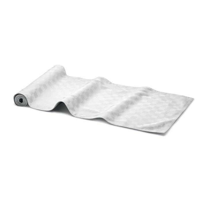Tischläufer aus Polyester 185 g/m² mit Mikrofaser und Non Woven Futter. Wasserabweisende Beschichtung auf der Oberseite. Maße: 140x40 cm.