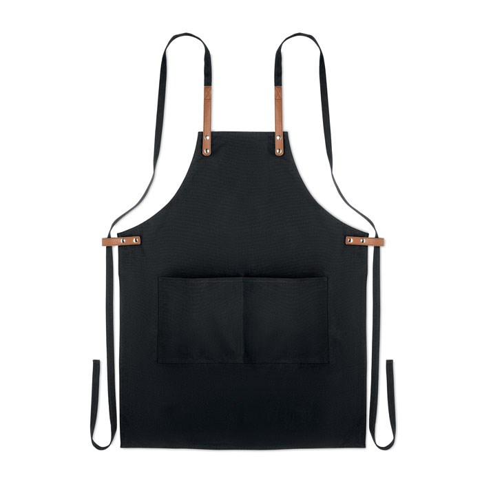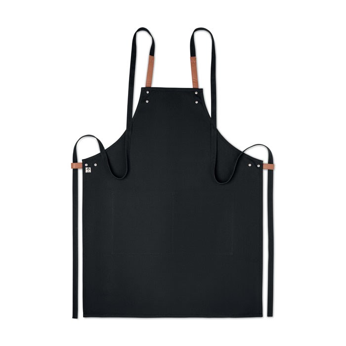 Küchenschürze mit verstellbarem Nackengurt und 2 Fronttaschen aus 340 g/m² Organic Cotton/Leinen. Lieferung in individuellem Karton.