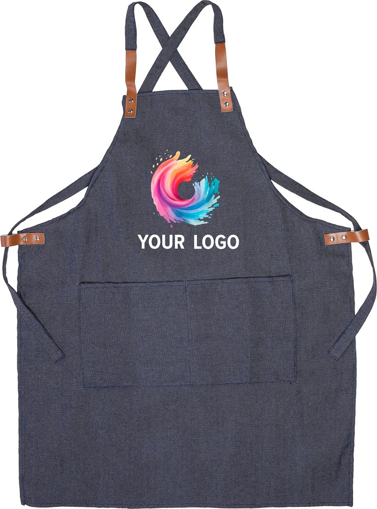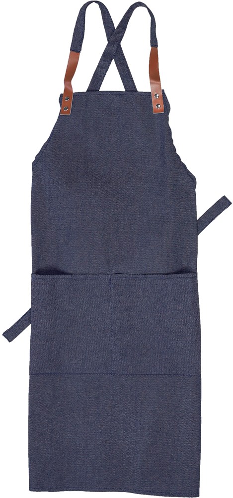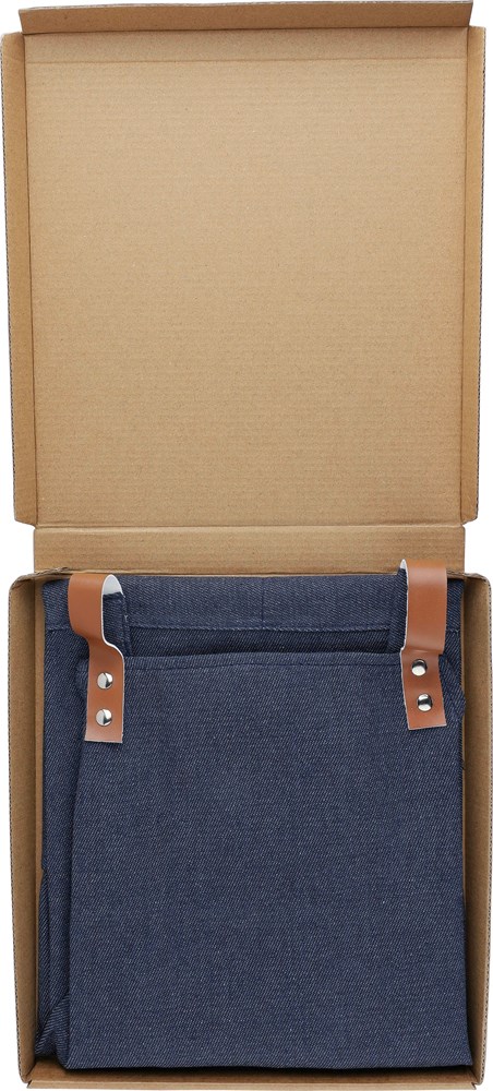 Schürze aus Denim (280 g/m2) mit Schulterriemen und zwei Fronttaschen. Der Jeansstoff besteht aus 65% Polyester und 35% Baumwolle. Diese Schürze hat keinen Nackenriemen, sondern nur Schulterriemen. Die Farbechtheit des Denims beträgt bis zu 2-3 Stufen. Einzeln verpackt in brauner Geschenkbox.