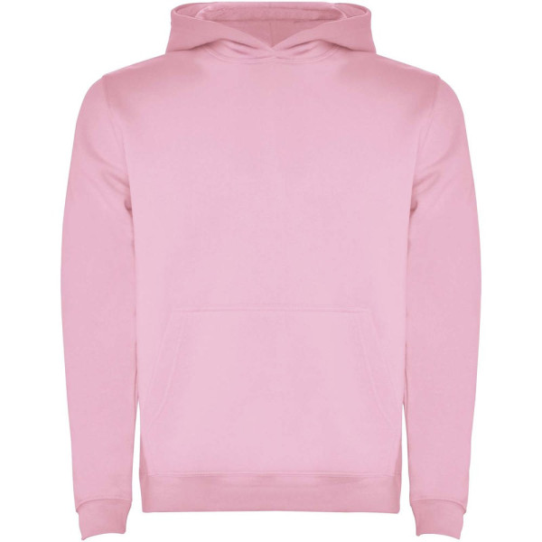 Zweifarbiger Kapuzenpullover mit doppeltem Stoff. Verstärkte und verdeckte Nähte am Kragen und an der Kängurutasche. Elastischer 1×1-Rippstrick an Ärmeln und Bund. Herausnehmbares Etikett. Das Modell ist 120 cm groß und trägt Größe 5/6.