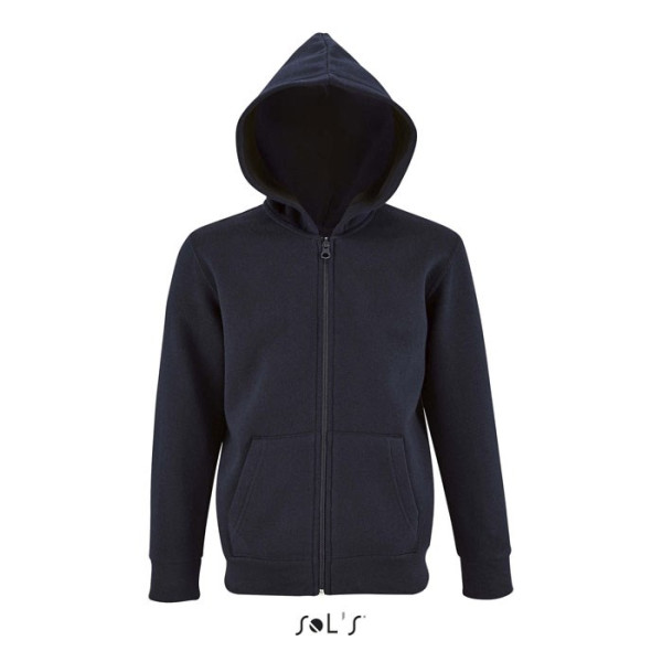 SOL'S STONE KIDS, KIDS' ZIP HOODIE, 50% ringgesponnene Baumwolle - 50% Polyester BRUSHED FLEECE 260, angesetzte Ärmel, 2 Kängurutaschen, Kapuze, gerippte Bündchen an Ärmeln und Saum, schlauchförmig. Zur Größenanpassung beachten Sie bitte die Größentabelle im Abschnitt Produktdokumentation.