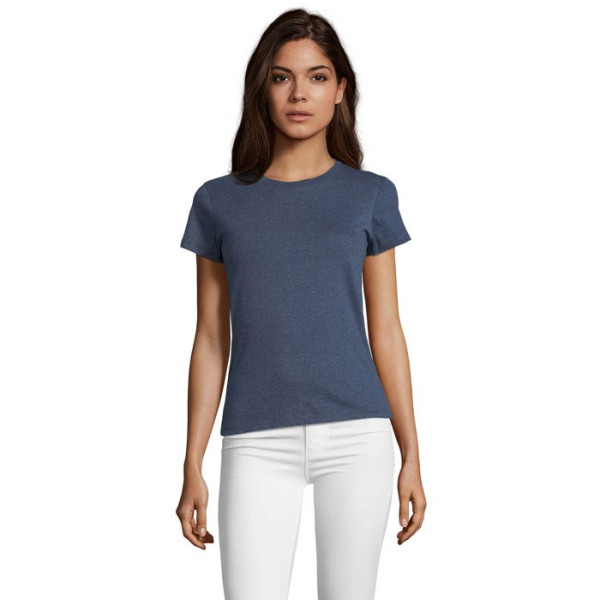 SOL'S REGENT FIT WOMEN, Damen T-Shirt mit Rundhals, 100% halbgekämmter, ringgesponnener Baumwoll-Jersey 150, Nackenband, Rippkragen mit Elasthan, Kurzarm, Seitennähte. (1) Heather Pink : 60 % Baumwolle / 40 % Polyester, (2) Heather Sky : 60 % Baumwolle / 40 % Polyester, (3) Grau meliert : 85 % Baumwolle Heather Oxblood : 60 % Baumwolle / 40 % Polyester, (6) Heather Khaki : 60 % Baumwolle / 40 % Polyester, (7) Heather Denim : 60 % Baumwolle / 40 % Polyester. Um Ihre passende Größe zu finden, beachten Sie bitte die Größentabelle unter Details/Size Chart.