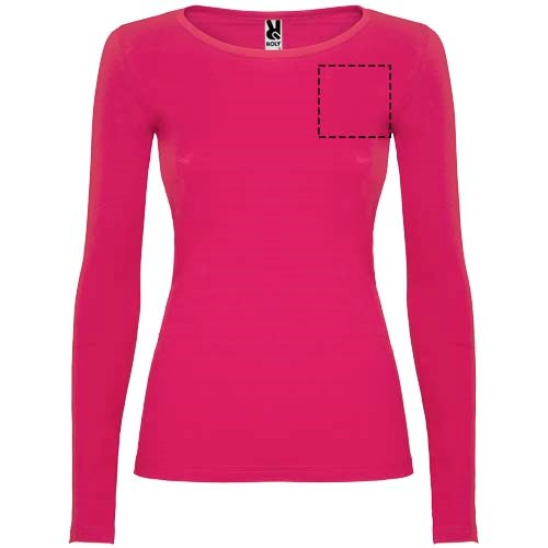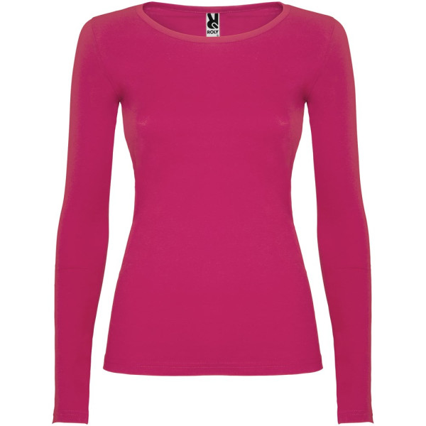 Langärmeliges, halb tailliertes T-Shirt mit feinem Halsbündchen. Keine Ärmelbündchen. Seitennähte. Herausnehmbares Etikett.