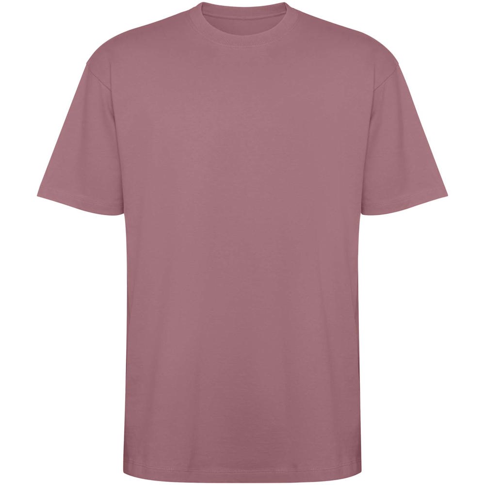Oversize T-Shirt. Rundhalsausschnitt aus 2x1 Rippstrick mit abgestimmten Nahtabdeckungen. Seitennähte. Breite Doppelnähte an Ärmeln und Saum. Abnehmbares Etikett.