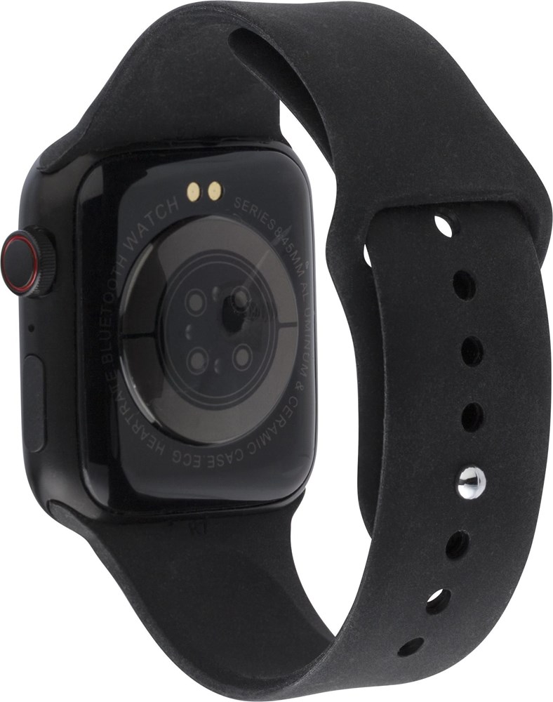 Intelligente Uhr aus PC und PVC mit verstellbarem Armband und drahtloser Technologie. Mit Touchscreen und Scrolltaste an der Seite. Funktionen: Telefonanruf, Herzfrequenz, Schlafüberwachung, Sauerstoffmessung, Nachrichtenerinnerung, Trinkwassererinnerung, Trainingserinnerung. Inklusive USB-Kabel. Einzeln verpackt in einer Box.
