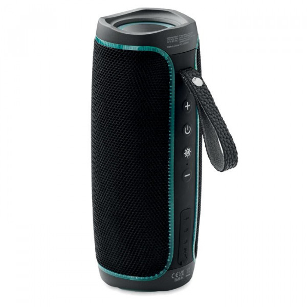 Wireless LED-Lautsprecher 2x5W. Mit wechselndem farbigem LED Licht. Spritzwassergeschützt nach IPX4. Inkl. wiederaufladbarer 1800 mAh Li-Ion-Akku.