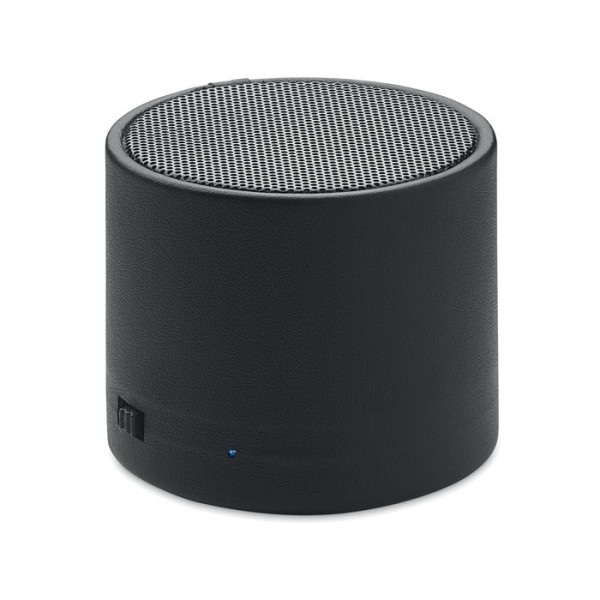 5.0 Wireless Lautsprecher. Gehäuse aus ABS und PU (zu 58% recycelt: 40% recyceltes Polyester, 18% recyceltes PU). LED-Lichtanzeige. Ausgangsdaten: 3W, 3 Ohm und 5V. Spielzeit ca. 3h.