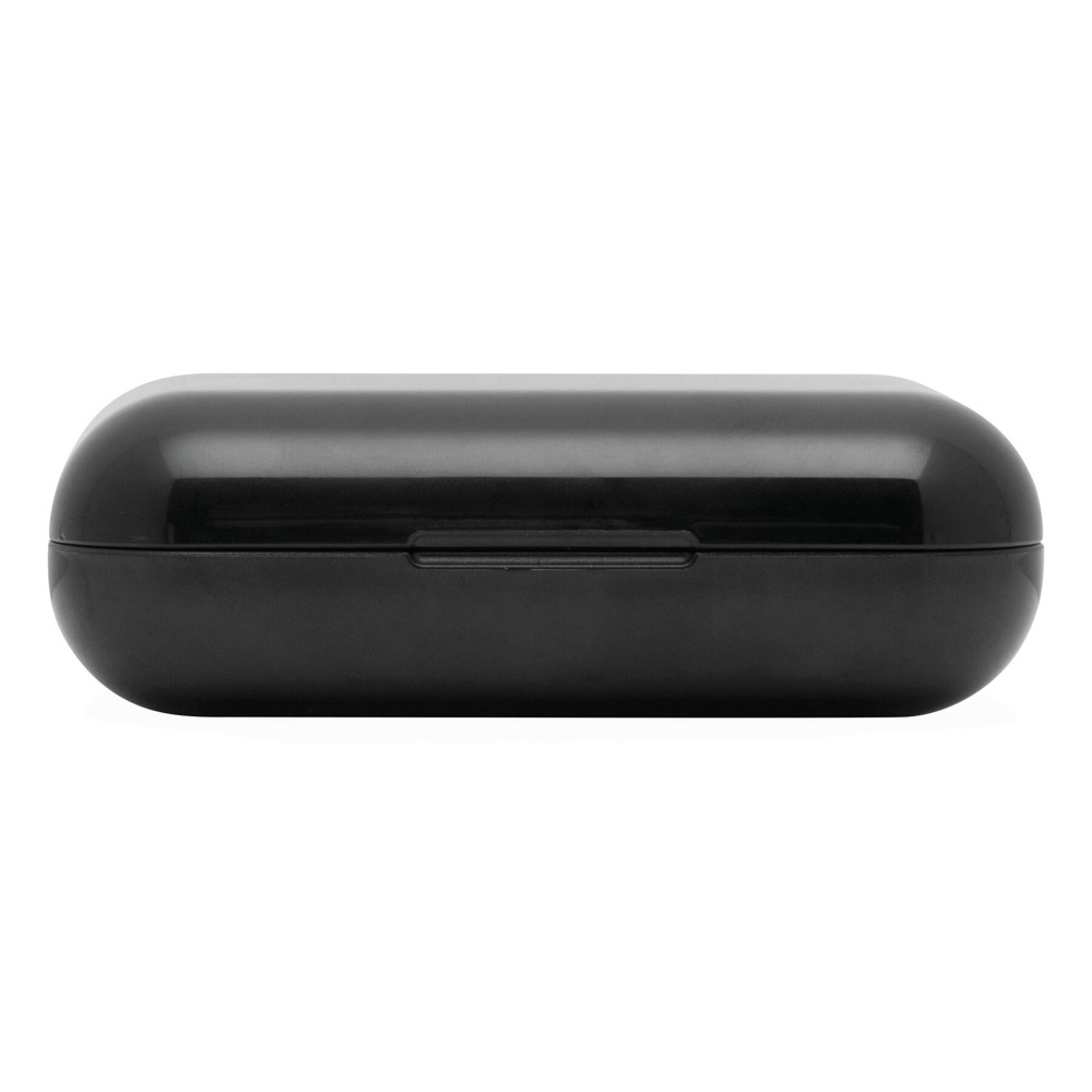 Wireless-In-Ear-Kopfhörer TWINS: mit Freisprechfunktion, kompatibel zu Bluetooth®, Reichweite ca. 10 m, Taste für Rufannahme/-beendigung und Track Vor- und Zurückfunktion, Stereo- oder Monobetrieb möglich, inkl. USB-Ladekabel mit Micro-USB Stecker (Länge: ca. 20 cm), mit grüner Ladekontroll-LED, Aufbewahrungsbox ist gleichzeitig Ladestation, Kapazität Kopfhörer: 30 mAh, Ladestation: 300 mAh, in Box