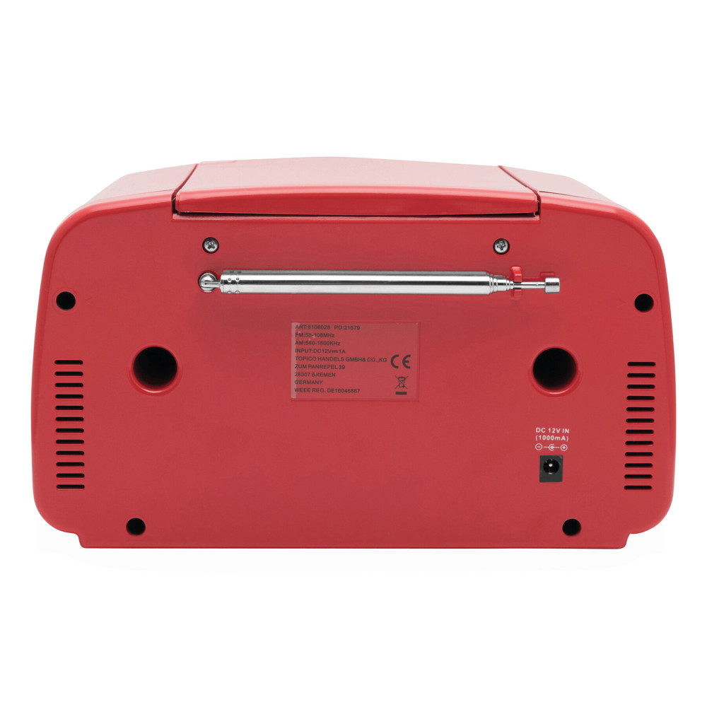 CD-Radiorekorder DINER: AM/FM-Radio, CD-Player, zur Koppelung mit wireless-fähigen Geräten, kompatibel zu Bluetooth®, AUX-IN Funktion, Abspielen von MP3-Dateien über USB-Anschluss und CD, Kopfhöreranschluss, beleuchtetes Display, mit 12-Volt-Netzadapter, 2 Drehregler: laut/leise und für "Album vor/zurück" (im MP3-Modus), inkl. Infrarot-Fernbedienung, mit Bedienungsanleitung, in Box