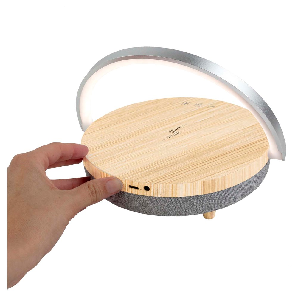 Dieser Artikel hat 4 verschiedene Funktionen: Einen kabellosen Bluetooth® Lautsprecher, eine kabellose Ladestation, eine LED-Lampe mit 3 einstellbaren Helligkeitsstufen und eine Telefonhalterung für Mobiltelefone. Dank der Multifunktionsfähigkeit können Sie Ihre Lieblingsmusik genießen und gleichzeitig Ihr Handy aufladen. Ein Ladekabel Typ-C und ein Zusatzkabel sind im Lieferumfang enthalten.