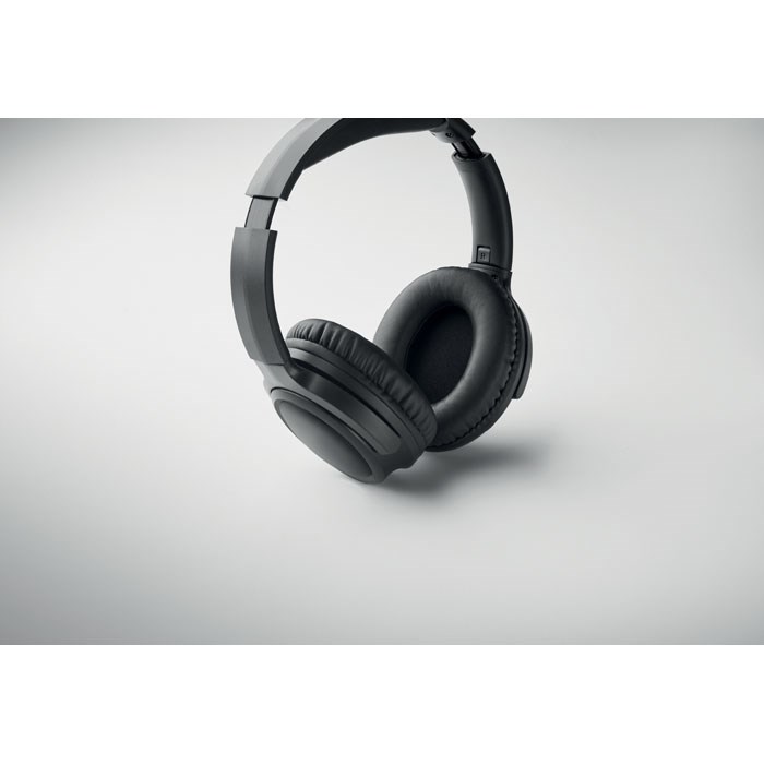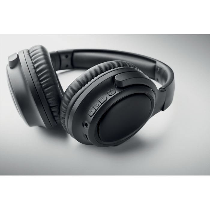 Faltbarer wireless 5.3 Kopfhörer aus ABS mit aktiver Geräuschminimierung (ANC). Freisprechfunktion, eingebautes Mikrofon. Spieldauer ca. 17 Stunden. Inkl. Type-C-Ladekabel. Wiederaufladbarer 200 mAh Li-ION. Betriebsreichweite: 10 m.