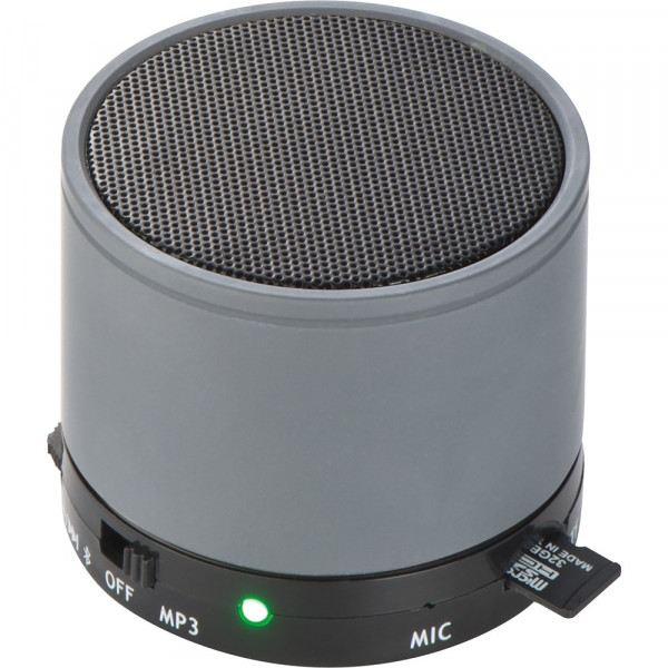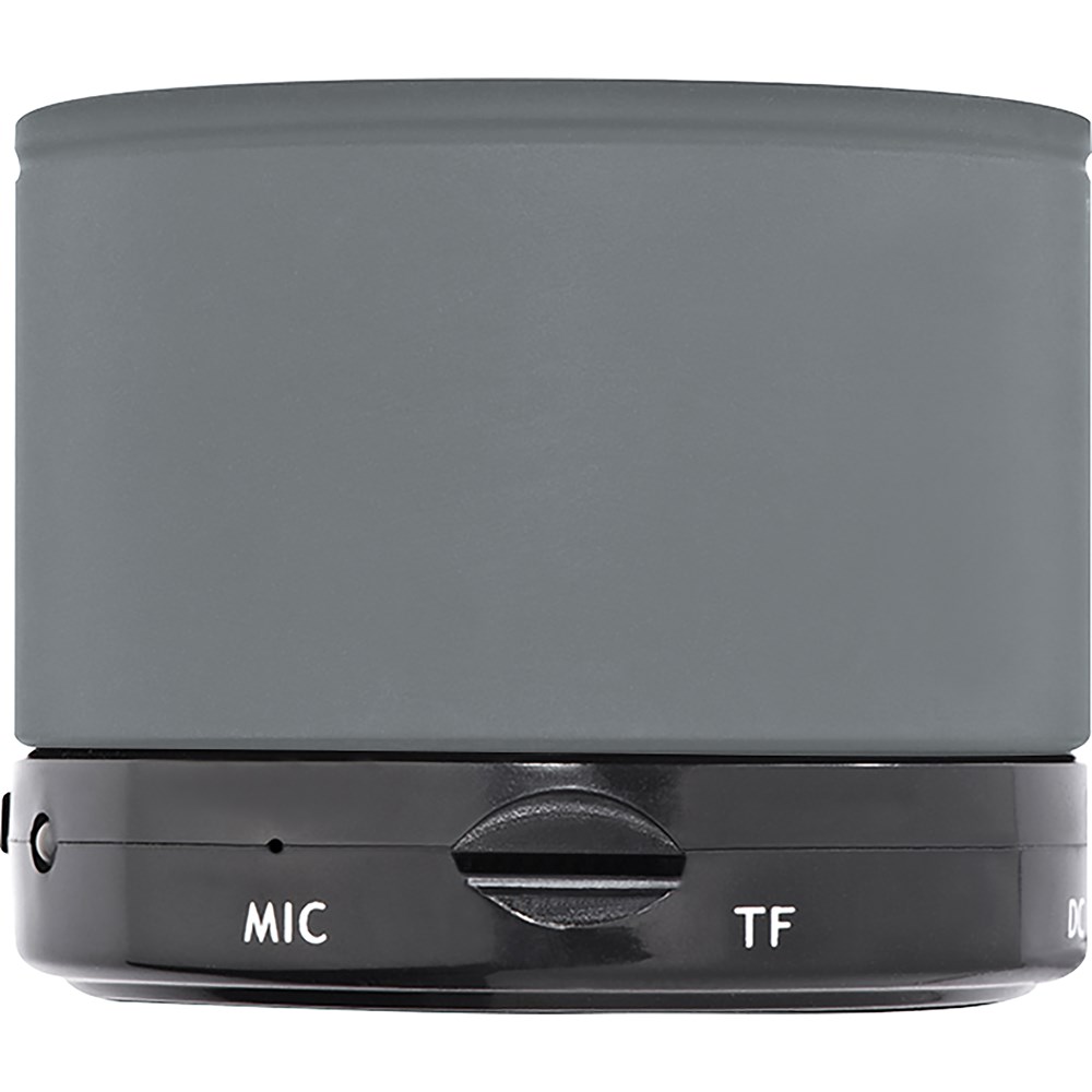 Mini Bluetooth Lautsprecher mit USB Anschluss zum Aufladen, einer Reichweite bis zu 10 Metern, Ladezeit ca. 2h und einer Laufzeit von bis zu 1,5 Stunden. Ihre Werbung wird auf den Lautsprecher gelasert.