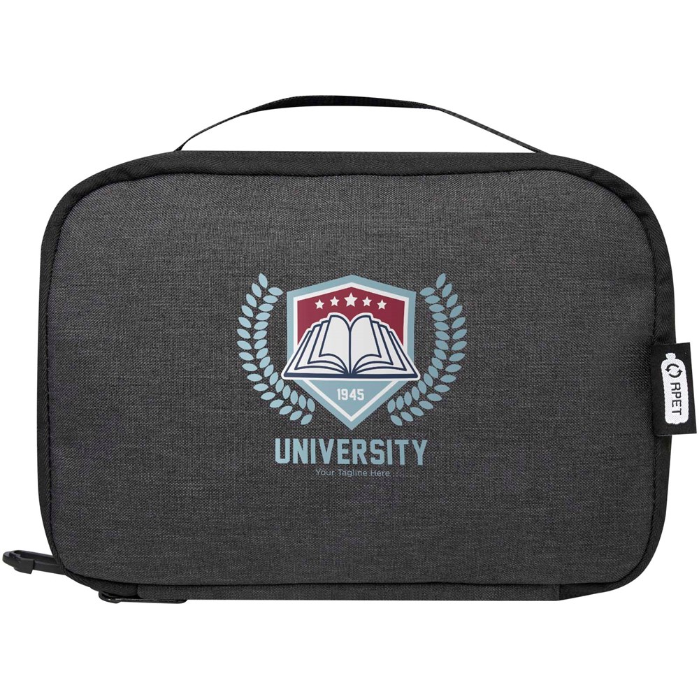Die GRS-recycelte Techniktasche Ross eignet sich ideal für Personen, die häufig unterwegs sind, und bietet Platz für Powerbanks, Ladekabel oder sonstiges elektronisches Zubehör. Ausgestattet mit mehreren Taschen, elastischen Loops und einer Kabeldurchführung, die es ermöglicht, eine Powerbank in der Tasche aufzubewahren und gleichzeitig ein Handy aufzuladen. Die Tasche verfügt zudem über einen Karabinerhaken aus Kunststoff zur Befestigung an einer weiteren Tasche. Kapazität: 1 Liter.