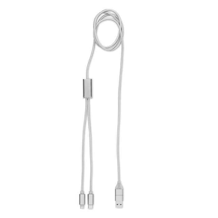 Ladekabel aus Aluminium mit Eingang: 2-in-1 Typ-C & Typ-A und Micro-B (2 in 1 Pin), Typ-C und Micro-B Ausgang. Kabellänge: 120cm.