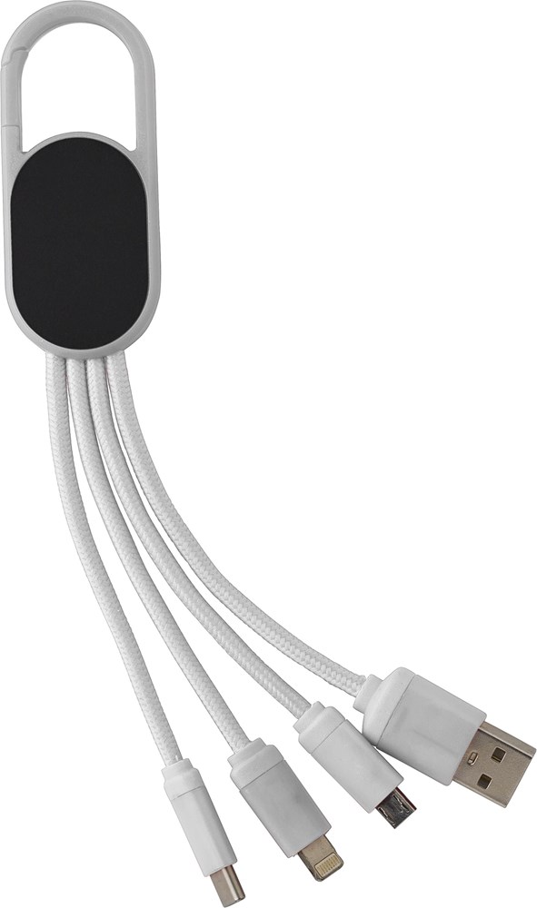 4-in-1 Ladekabelset mit einem Haken. Das Set hat einen USB-, USB-C-, Mikro-USB- und... mehr