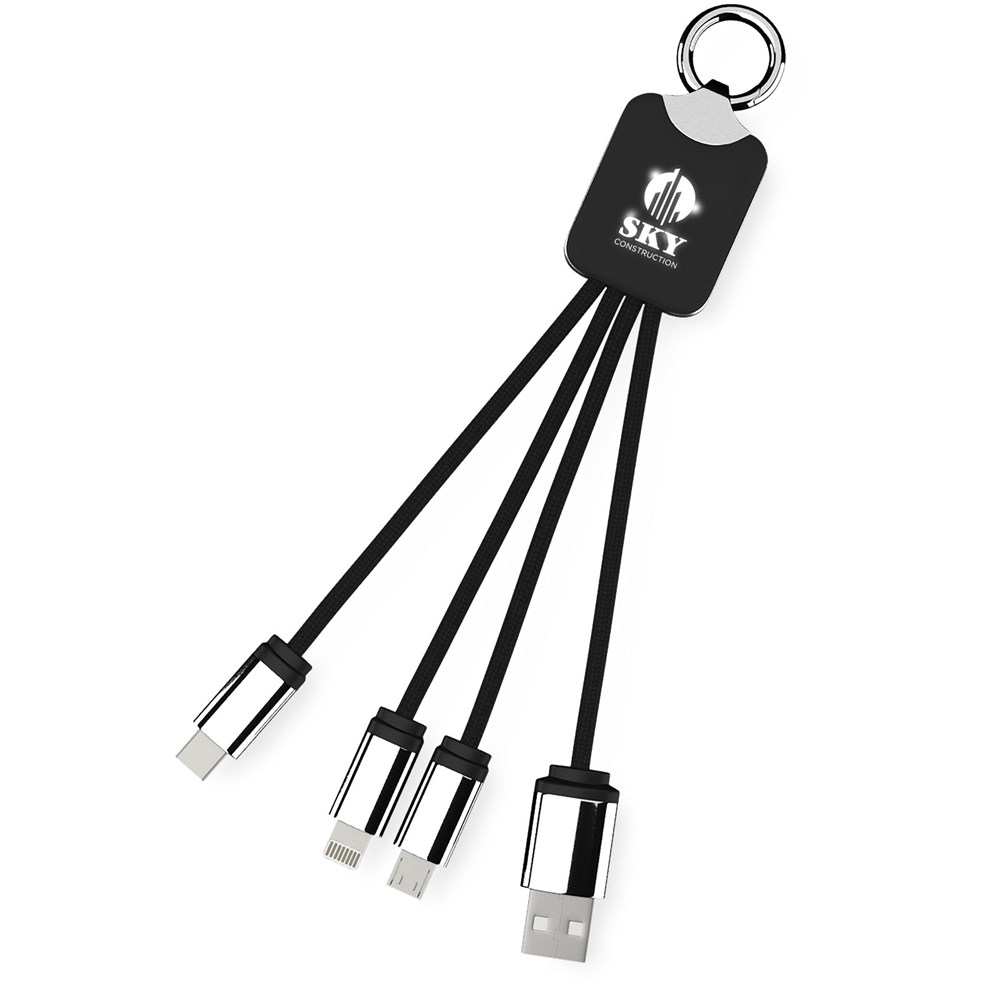 Beleuchtetes Logo-Ladekabel mit Gummi- und Metalloberfläche, ausgestattet mit drei Anschlüssen... mehr