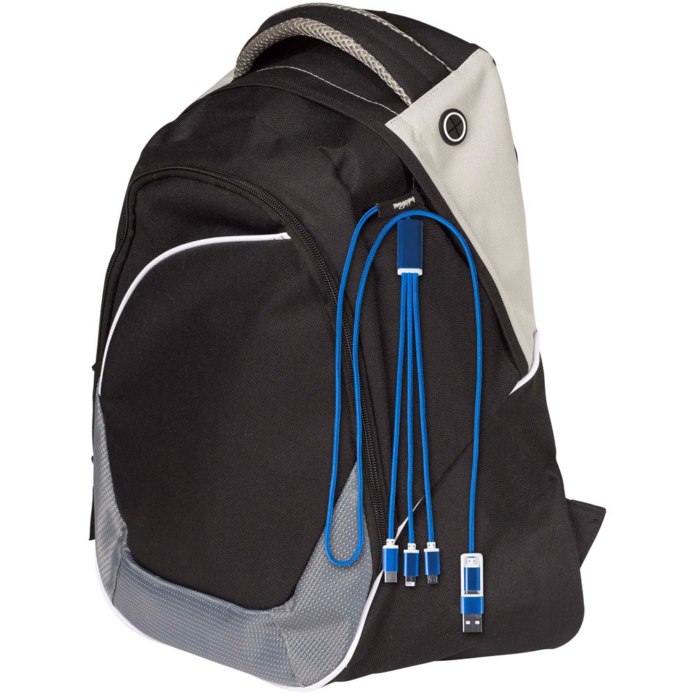 Dieses Kabel verfügt über einen USB-A- und einen Typ-C-Eingangsanschluss in Kombination mit einem Typ-C-, einem Micro-USB- und einem Lightning/Micro-USB-Kombi-Ausgangsanschluss. Diese Anschlüsse ermöglichen das Laden der meisten iOS/Android-Smartphones, Kameras, Powerbanks und Ohrhörer. Das Kabel ist 100 cm lang und besteht aus recyceltem Aluminium und RPET.