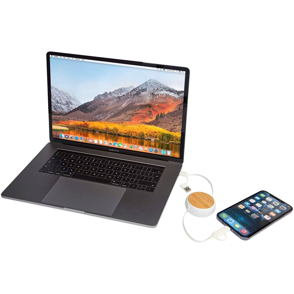 Chechia 100cm 5-in-1 Kabel aus recyceltem Kunststoff, einziehbar, für Datenübertragung und 45W Schnellladung mit Bambusdetails