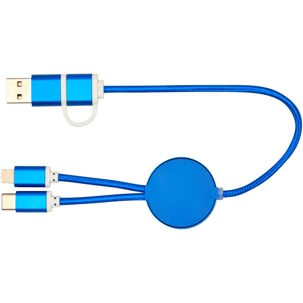 Das Alasia 27 W 5-in-1 Daten- und Schnellladekabel besteht aus dünnem, langlebigem recyceltem Aluminium und recyceltem Kunststoff. Das Kabel verfügt über einen USB-A- und einen Typ-C-Eingang sowie einen kombinierten Typ-C- und Lightning/Micro-USB-Ausgang. USB-A zu USB-C liefert max. 27 W Ausgangsleistung, alle anderen Anschlüsse max. 15 W. Kompatibel mit CarPlay und Android Auto. Ob zu Hause, im Büro oder unterwegs, das Alasia Kabel bietet Leistung und Stil in einem kompakten Paket. Länge des Kabels: 30 cm.