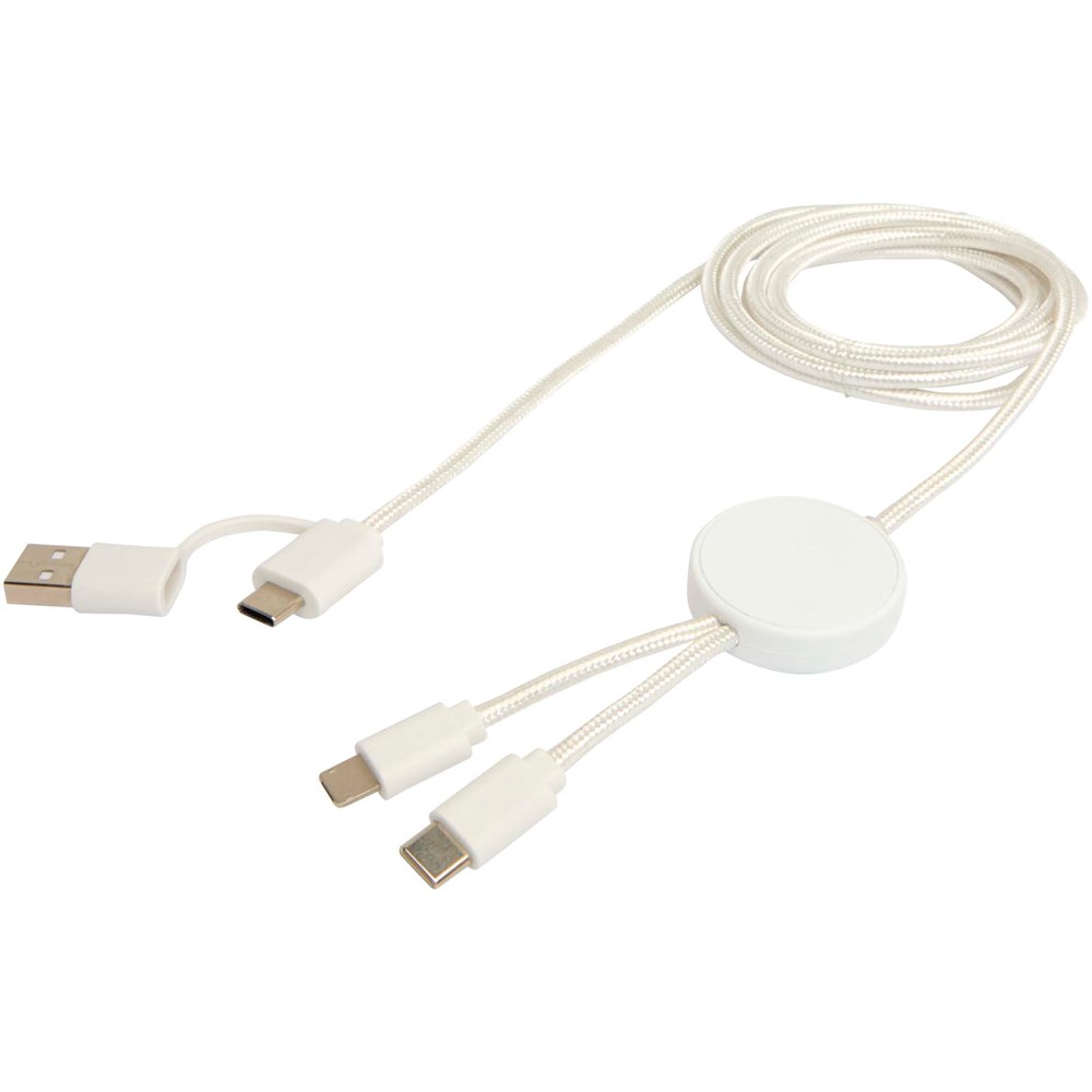 Das Citala 27 W 5-in-1 Daten- und Schnellladekabel ist aus recyceltem Kunststoff hergestellt. Das Kabel verfügt über einen USB-A- und einen Typ-C-Eingang sowie einen kombinierten Typ-C- und Lightning/Micro-USB-Ausgang. USB-A zu USB-C liefert max. 27 W Ausgangsleistung, alle anderen Anschlüsse max. 15 W. Kompatibel mit CarPlay und Android Auto. Ob zu Hause, im Büro oder unterwegs, das Citala Kabel bietet Leistung und Stil in einem kompakten Paket. Länge des Kabels: 150 cm.