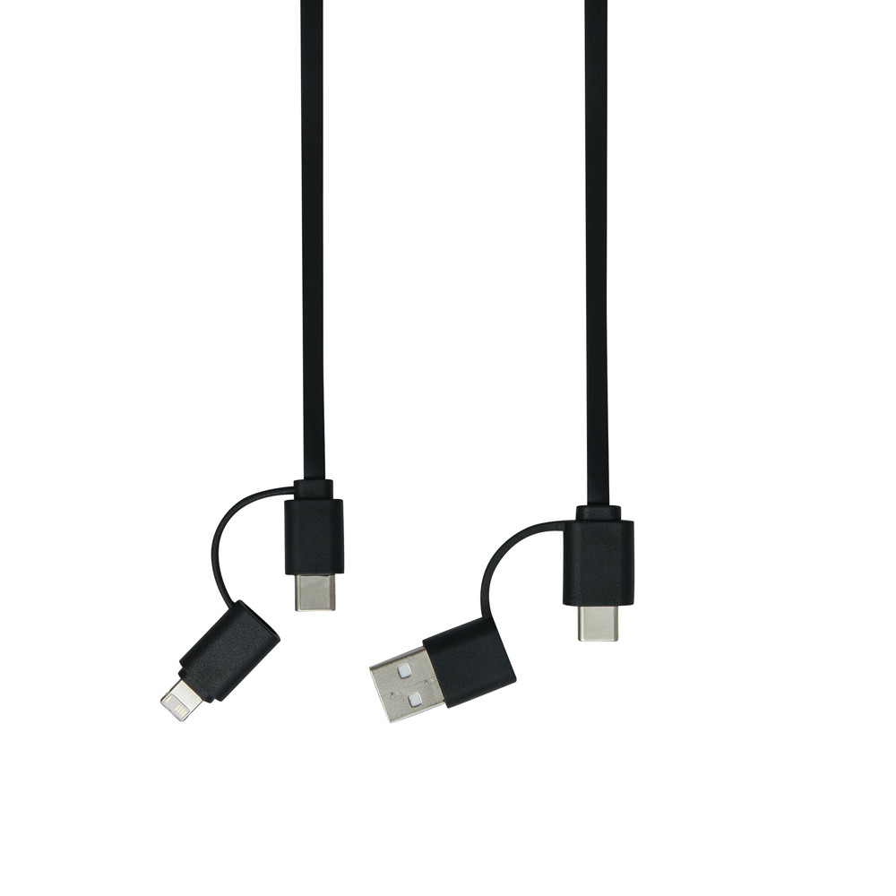 Lade- und Datenkabel TRANSFER ROUND, aufrollbar (Länge: ca. 92 cm): zum Aufladen von Smartphones, USB-betriebenen Geräten und Laptops (65 W Leistungsübertragung) sowie zum Übertragen von Daten, inkl. 2 Ladesteckern (USB Typ C, Kombistecker Micro-USB/Lightning®), kombinierter USB Typ A / Typ C Eingangsstecker, in Box