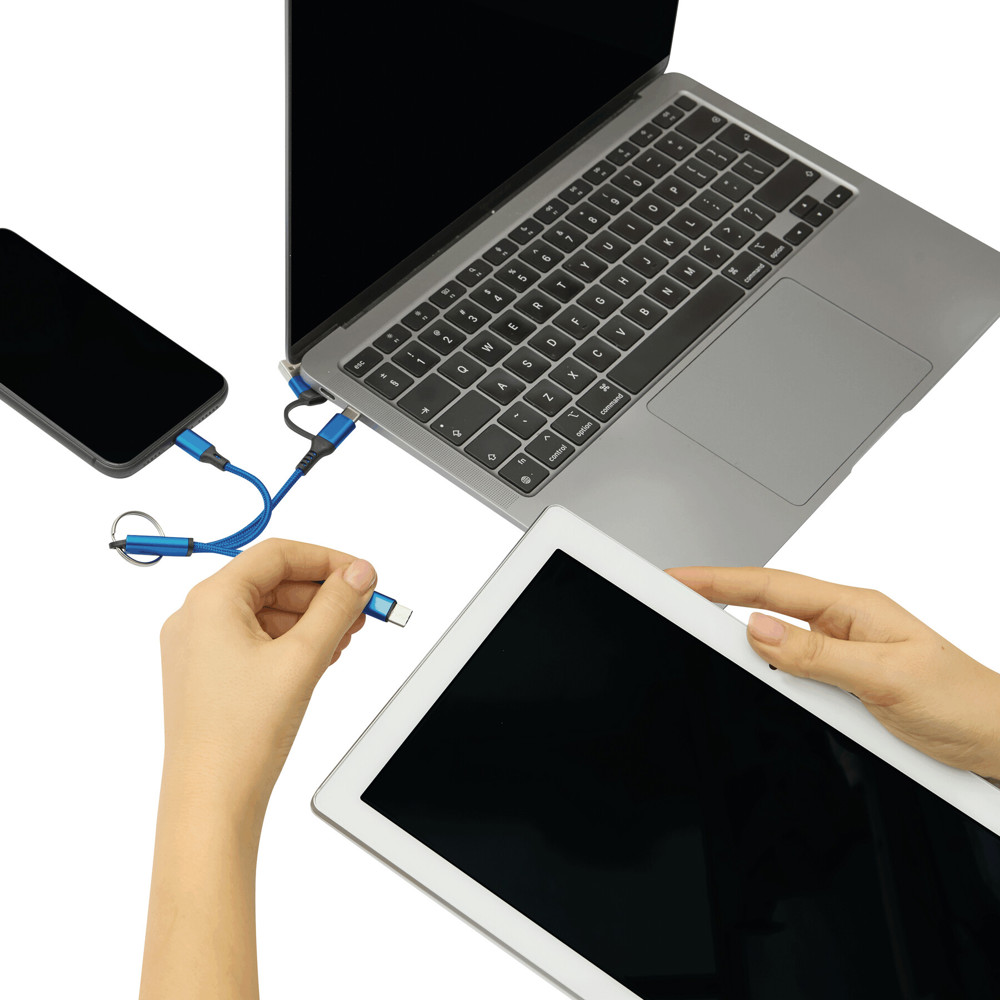 Ladekabel FANTAIL: zum Aufladen von Smartphones und USB-betriebenen Geräten, inkl. 2 Ladesteckern (USB Typ C, Kombistecker Micro-USB/Lightning®), Kabellänge ca. 18 cm, kombinierter USB Typ A / Typ C Eingangsstecker, mit Schlüsselring