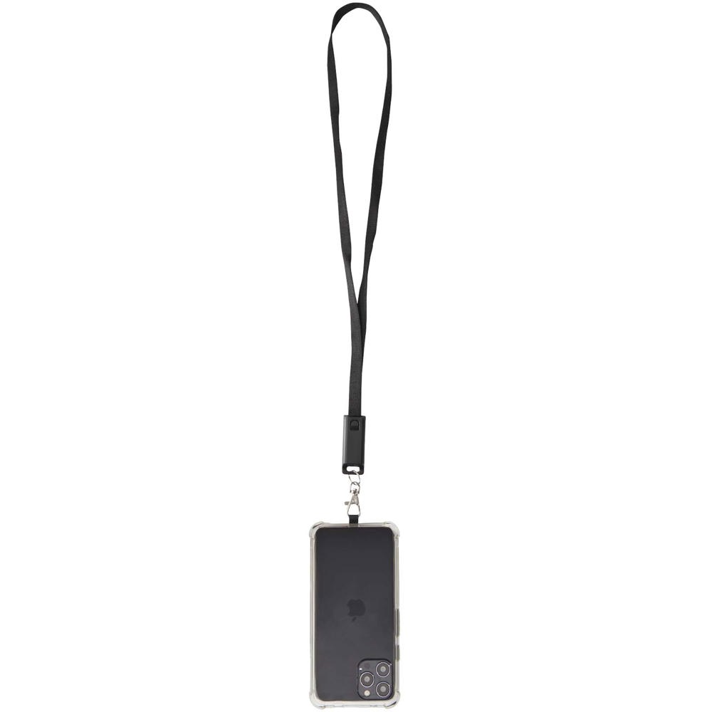 Das Franz Smartphone-Lanyard aus recyceltem Kunststoff ist ein praktisches Accessoire mit integriertem 65W 5-in-1 Ladekabel, das über Typ-C- und USB-A-Eingänge sowie Typ-C-, Lightning- und Micro-USB-Ausgänge verfügt. Das Kabel ist leistungsstark genug, um die meisten Laptops, Tablets und Smartphones schnell aufzuladen. Kompatibel mit CarPlay und Android Auto – ideal für Reisen, Arbeit oder den Alltag.