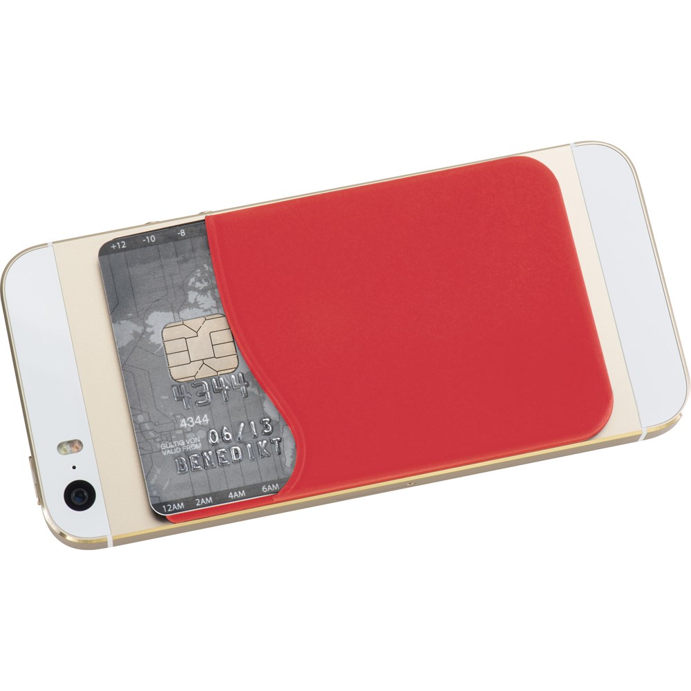 Handytasche mit Klebefolie auf der Rückseite. Sie lässt sich dadurch ganz einfach z.B. auf der Rückseite des Smartphones befestigen und bietet Platz für Karten uvm. Ihre Werbung drucken wir mittig auf die Tasche. Materialbedingt ist der Druck nur einfarbig in schwarz oder weiß möglich.