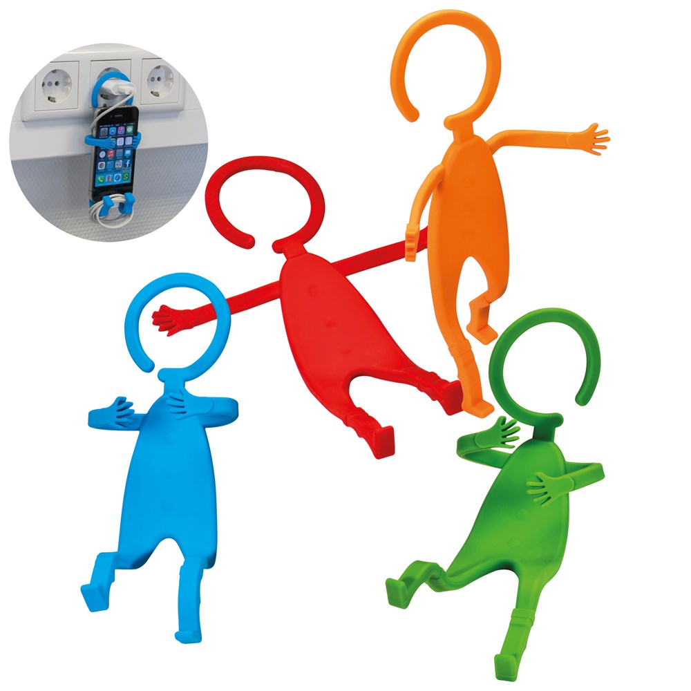 Aufgeräumt! Mit diesem Fleximännchen ist das Handy ordentlich beim Laden verstaut. Ihre Werbung drucken wir mittig auf den Bauch. Materialbedingt ist der Druck nur einfarbig in weiß möglich.