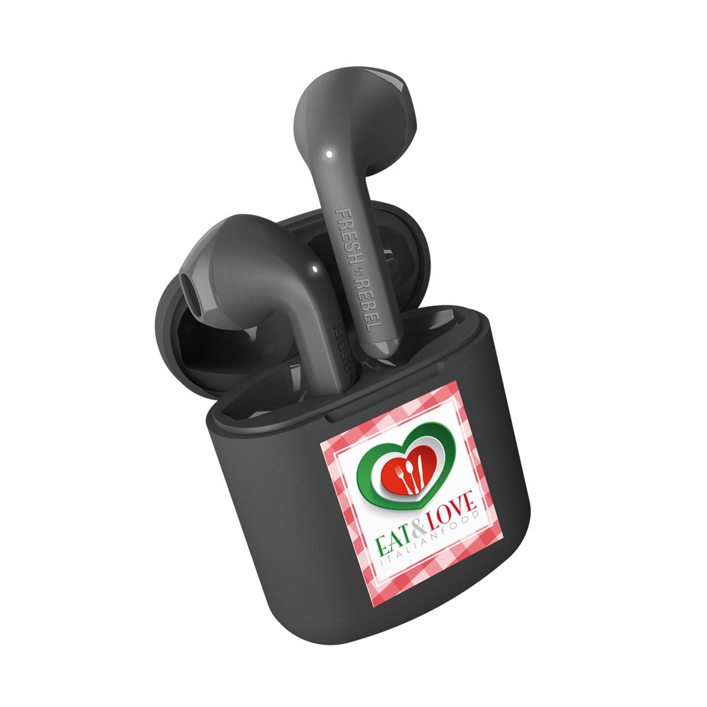 Zuverlässige und benutzerfreundliche True Wireless Ohrhörer mit Ohrstöpsel. Steuern Sie Musik und Anrufe einfach durch Berühren der Ohrhörer, passen Sie die Ohrhörer an Ihr Outfit an und genießen 24 Stunden Musik ohne Kabel. - Dual-Master (linker und rechter Ohrhörer können einzeln verwendet werden) - Touch-Control-Steuerung - Sprachassistent - 24 Stunden Wiedergabezeit - innerhalb von 1,5 Stunden ist die Ladebox vollständig aufgeladen Das Ladecase für die Twins 1 wird mit einem Vollfarbdruck personalisiert.