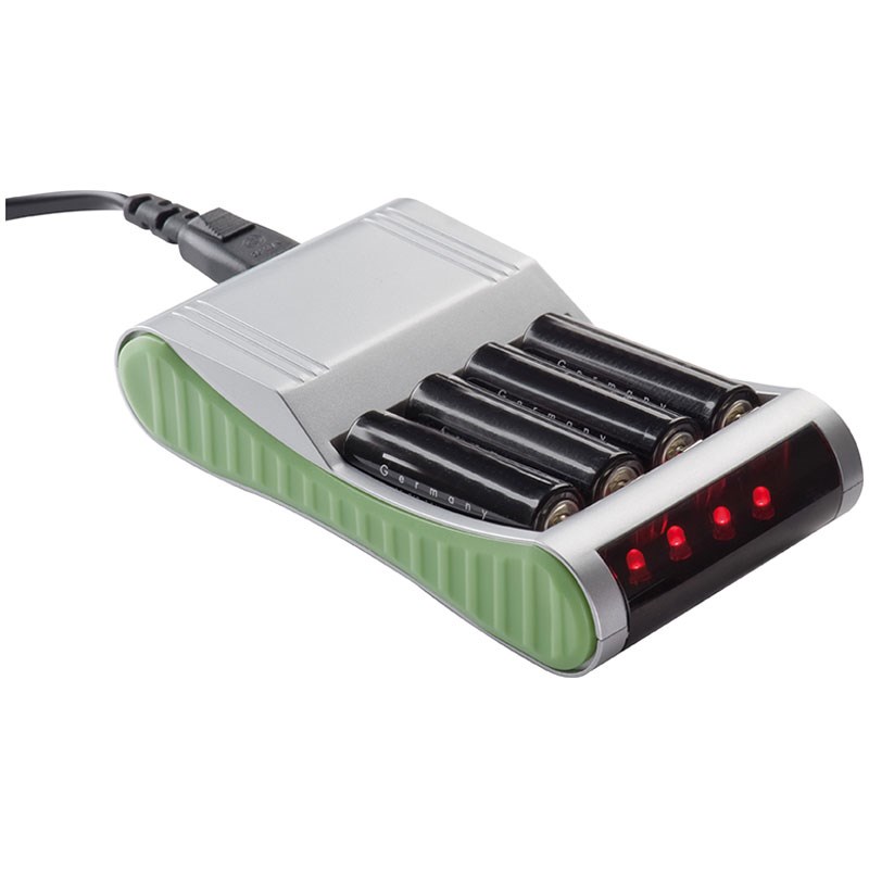 Dieses Batterieaufladegerät ist eine echte Innovation. Sie können bis zu 4 Alkalibatterien (AA / AAA Alkaline) oder auch NiMH-Batterien innerhalb von zwei Stunden aufladen und wieder verwenden. Inklusive einem Netzstecker. Ihre Werbung drucken wir auf die silberne Fläche.