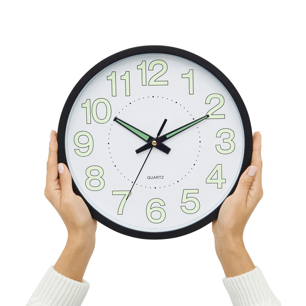 Wanduhr SUN: mit Quartz-Uhrwerk, analoger Zeitanzeige, phosphoreszierenden Ziffern und Zeigern (leuchten in der Nacht), batteriebetrieben (1x AA Batterien nicht enthalten)