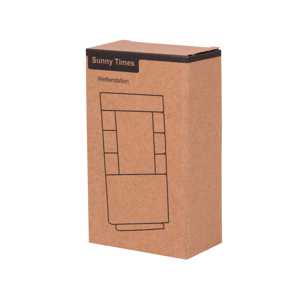 Wetterstation SUNNY TIMES im Hochformat: beleuchtete LCD-Anzeige, Alarmfunktion, Datumsanzeige, Thermometer, ausklappbarer Aufsteller auf der Rückseite, batteriebetrieben (2x AAA Batterie nicht enthalten)