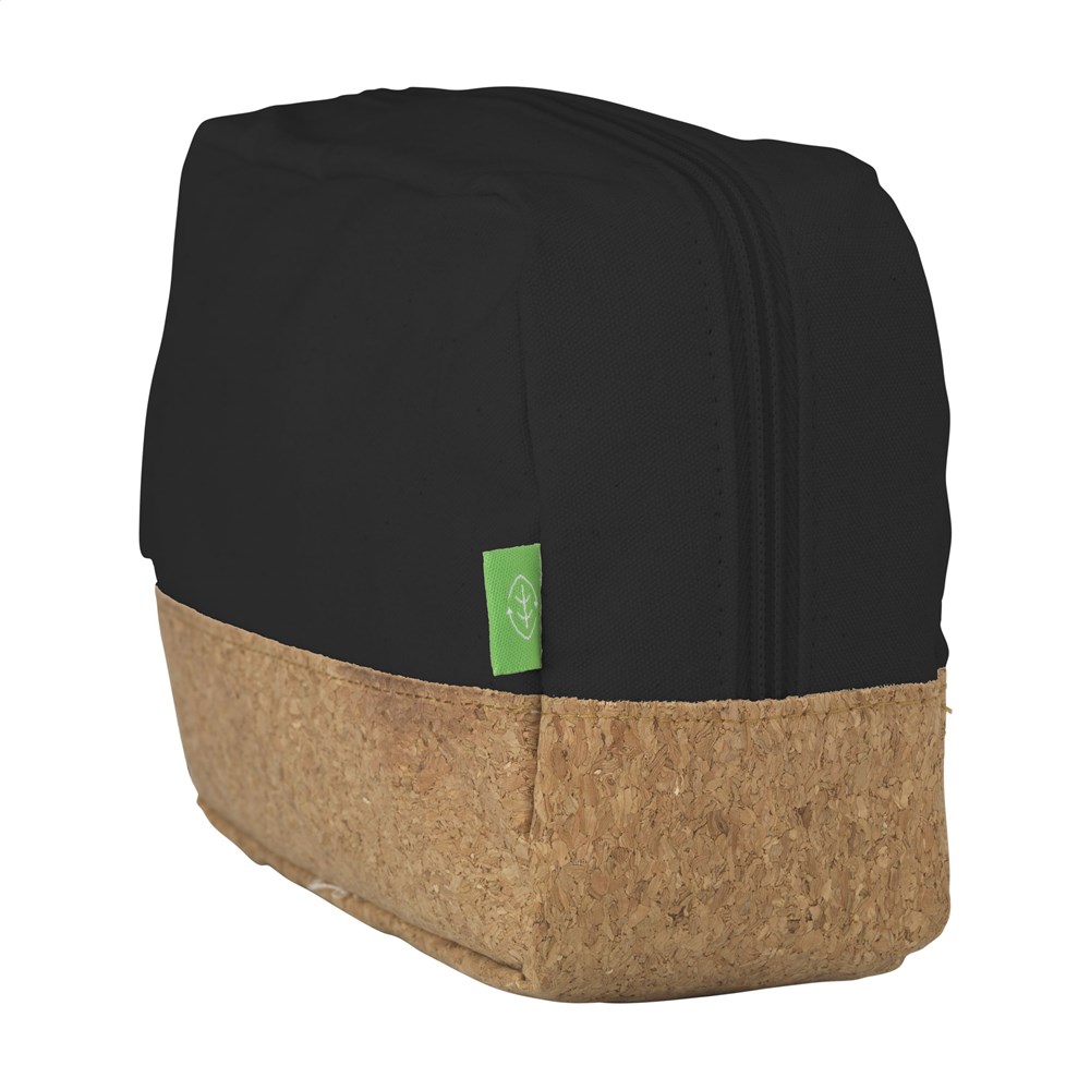 Kulturbeutel aus natürlichen Materialien: Bio-Canvas und Kork. Mit Reißverschluss, praktischer Trageschlaufe und wasserdichtem PEVA gefüttert.