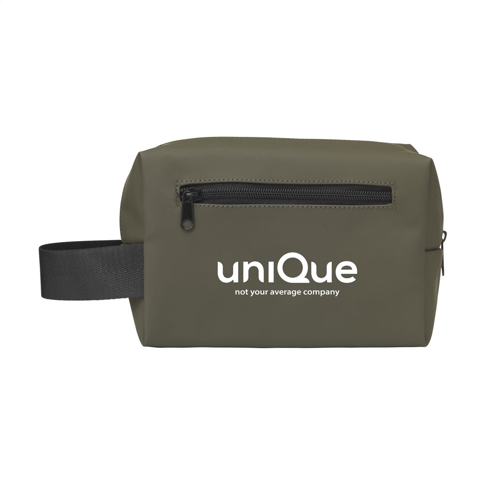 Praktischer und robuster Kulturbeutel zur Aufbewahrung von Körperpflegezubehör. Das Außenmaterial dieses Kulturbeutels besteht aus wasserabweisendem PU, zu 7% aus recyceltem PU und zu 32% aus recyceltem Polyester. Dieser Kulturbeutel ist sehr robust und zudem leicht zu reinigen. Ideal für den Einsatz in Bädern und Duschräumen. Die Innenseite ist mit einem Futter aus 210D RPET-Polyester verarbeitet. Das großzügige Reißverschlussfach ist mit elastischen Bändern und einem praktischen Seitenfach ausgestattet, sodass alle Ihre Utensilien gut organisiert aufbewahrt werden können. Darüber hinaus bietet der Kulturbeutel ein zusätzliches Reißverschlussfach auf der Vorderseite und eine praktische Trageschlaufe. Ein cooler Allrounder für den täglichen Gebrauch. RCS-zertifiziert. Gesamtes recyceltes Material: 39%.