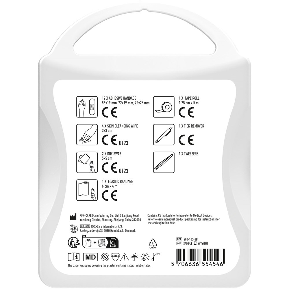 Ideales Erste-Hilde Set für jeden Tierbesitzer. Mit diesem Set sind Sie gut vorbereitet bei kleinen Verletzungen oder Unfällen während des Spaziergangs und Sie können Ihr Tier bei einem Zeckenbiss behandeln. Inhalt: 12 wasserfeste Pflaster, 4 hautreinigende Tupfer, 2 Trockentupfer, 1 Zeckenentferner, 1 elastischer Verband, 1 Pinzette, 1 Pflasterband. Alle im Set enthaltenen Erste-Hilfe- und Pflegeprodukte erfüllen alle geltenden EU-Vorschriften. Preis inkl. vollfarbigem Druck.