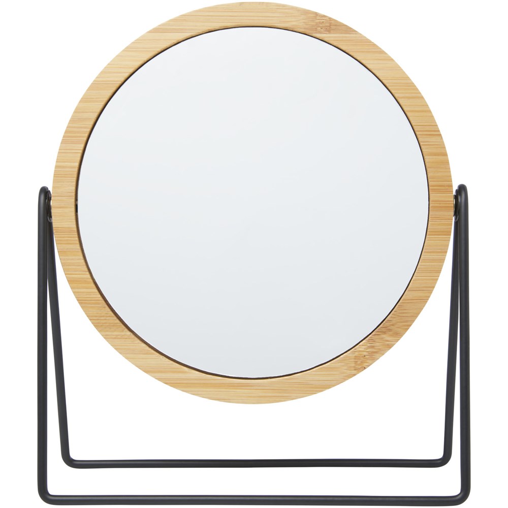 Um 360 Grad drehbarer Spiegel zum Aufstellen auf dem Waschtisch oder der Arbeitsplatte. Der Spiegel ist aus Bambus hergestellt, der nach nachhaltigen Normen bezogen und produziert wird.