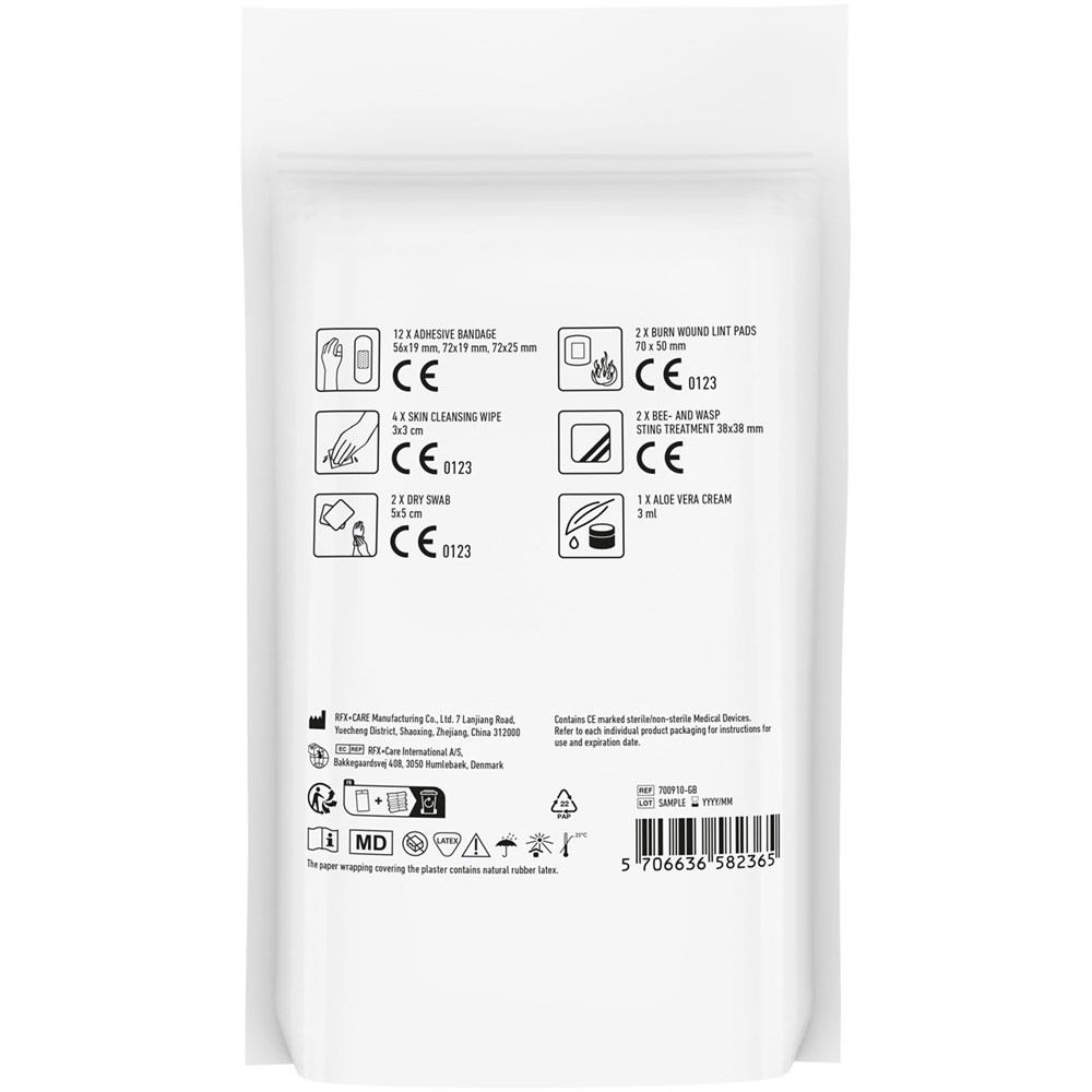 Ideales Erste-Hilfe Set um sich vor Bissen und Stichen von Insekten zu schützen oder Ihre Haut zu pflegen. Inhalt: 12 wasserfeste Pflaster, 4 hautreinigende Tupfer, 2 Trockentupfer, 2 Mullbinden für Brandwunden, 2 Insektenschutztücher, 1 Aloe Vera Creme. Alle im Set enthaltenen Erste-Hilfe- und Pflegeprodukte erfüllen alle geltenden EU-Vorschriften. Preis inkl. vollfarbigem Druck. Geliefert in Papierhülle.