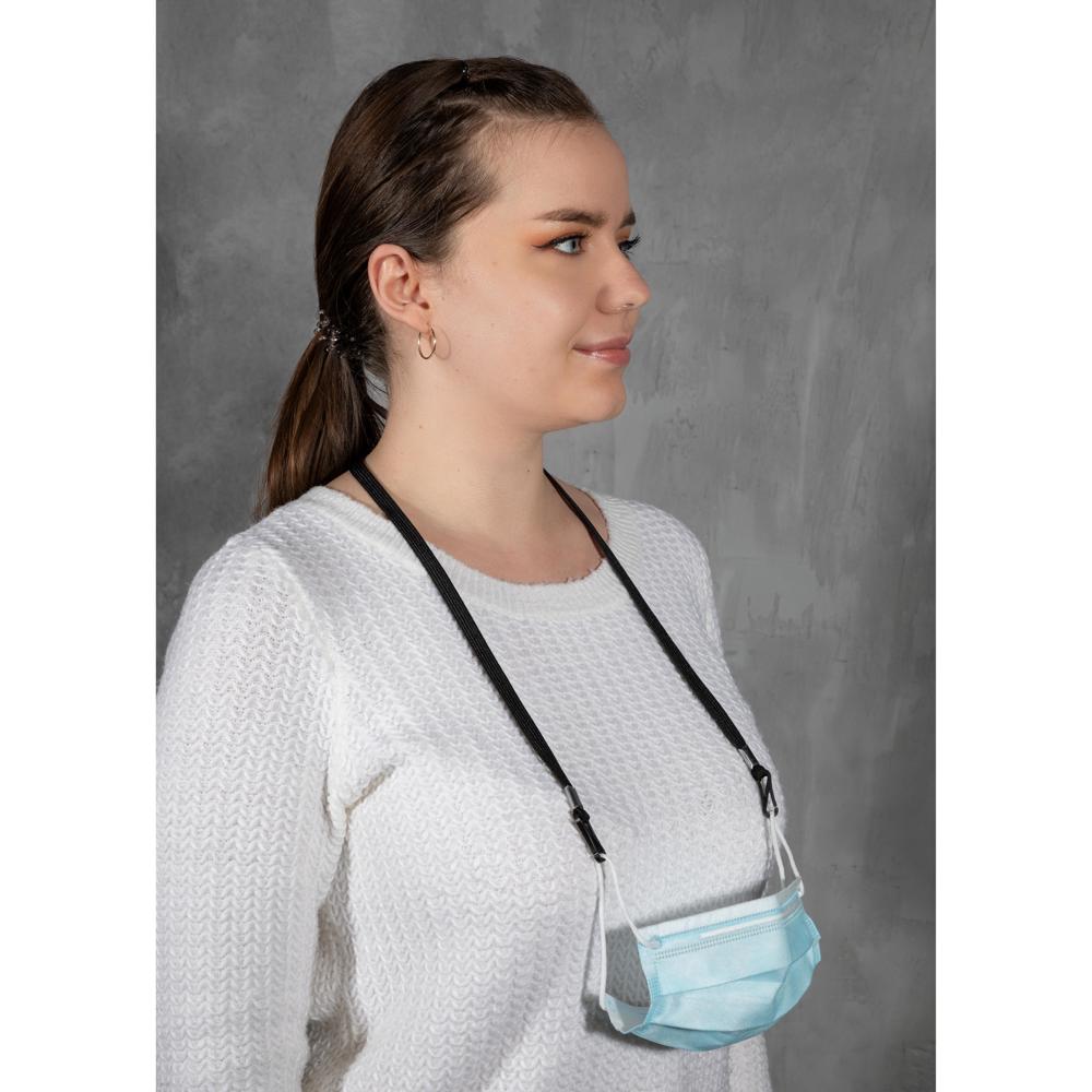 Praktische Maskenhalterung aus Polyester für ein extra weiches Tragegefühl. Das Band sorgt dafür, dass die Maske auch beim Absetzen immer griffbereit am Hals bleibt und damit nicht verloren gehen kann. Mit dem verstellbaren Stopper kann das Band in seiner Länge individuell angepasst werden.