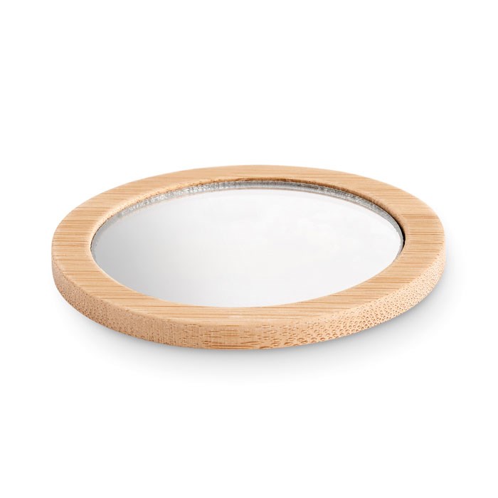 Runder, einseitiger Make-up Spiegel aus Bambus. Dieser kleine Spiegel ist ideal für die Handtasche. Erneuern Sie Ihr Make-up oder kontrollieren Sie kurz Ihr Aussehen. Er wird in einem Baumwollbeutel mit Kordelzug geliefert. Da Bambus ein natürliches Material ist, können Farbton und Maße pro Artikel variieren. Dies kann zu Abweichungen im Ergebnis der Veredlung führen. FSC®-certified | FSC 100%, N5.7, FSC-C213206